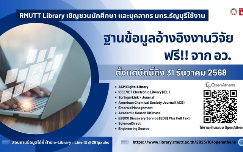 สำนักวิทยบริการและเทคโนโลยีสารสนเทศ ร่วมกับ EBSCO ประเทศไทย ขอเชิญนักศึกษา อาจารย์ บุคลากรและนักวิจัย มทร.ธัญบุรี เข้าร่วมอบรมออนไลน์